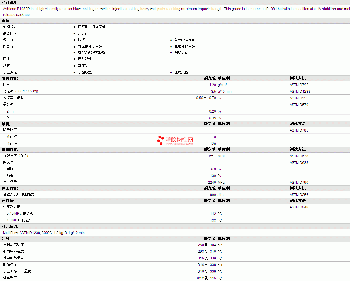 ASHLENE PC P1083R 物性表详情见附件