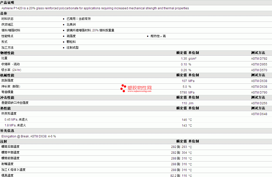 如需了解ASHLENE PC P1420物性表更多详情,ROHS(SGS)报告、 材质证明、UL黄卡等,最新行情报价等可来电咨询或QQ:767320520
