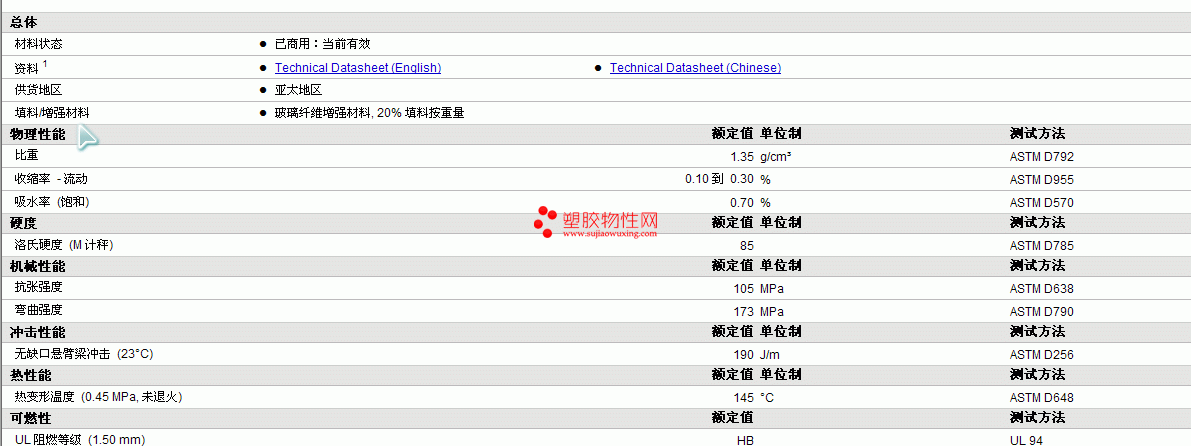 Cheng Yu PC/PET E500G20物性表 详细内容如图