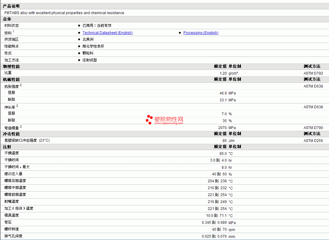 ColorFast ABS/PBT PBA1000物性表详细内容如图