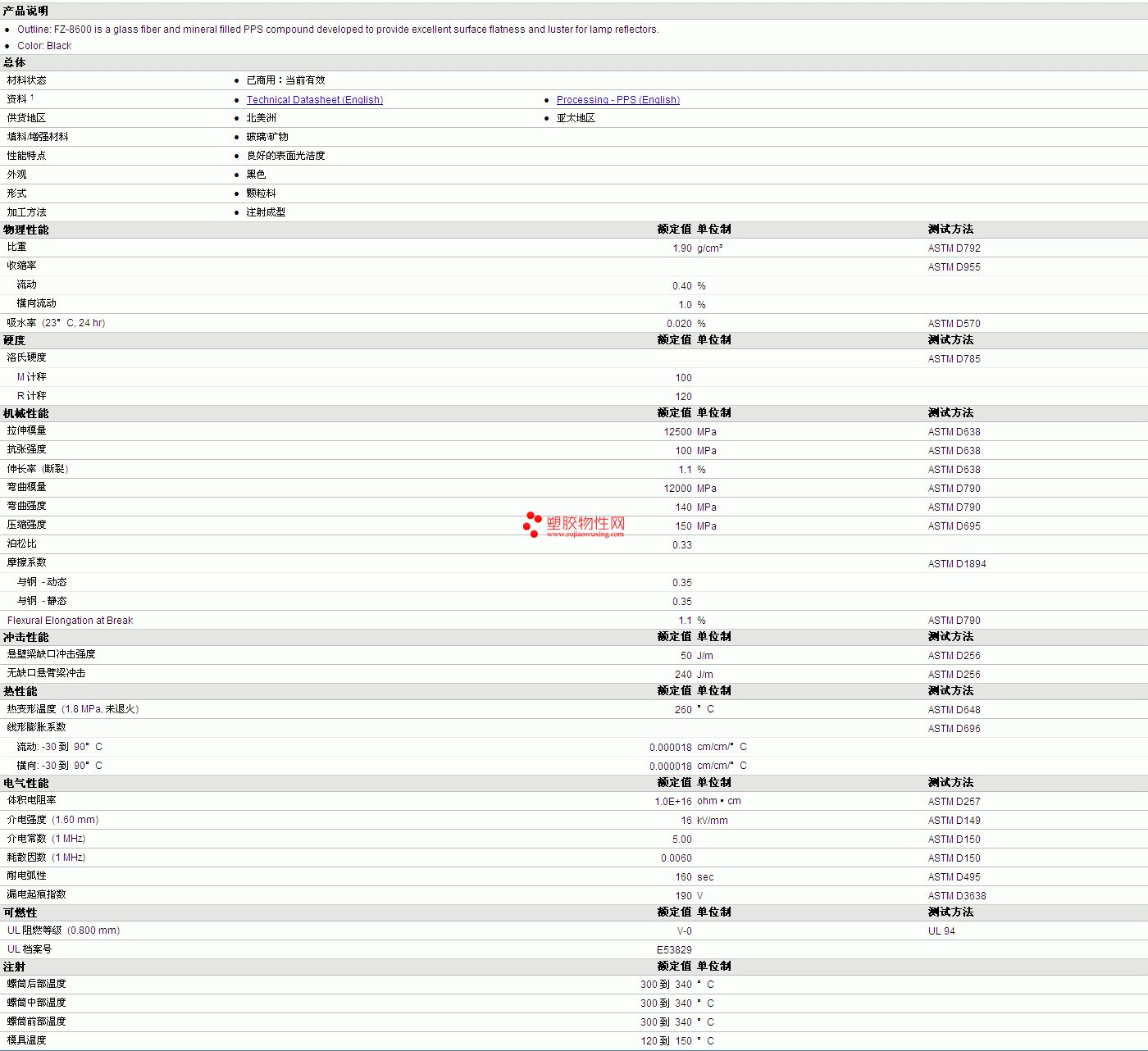 DIC.PPS FZ-8600物性表