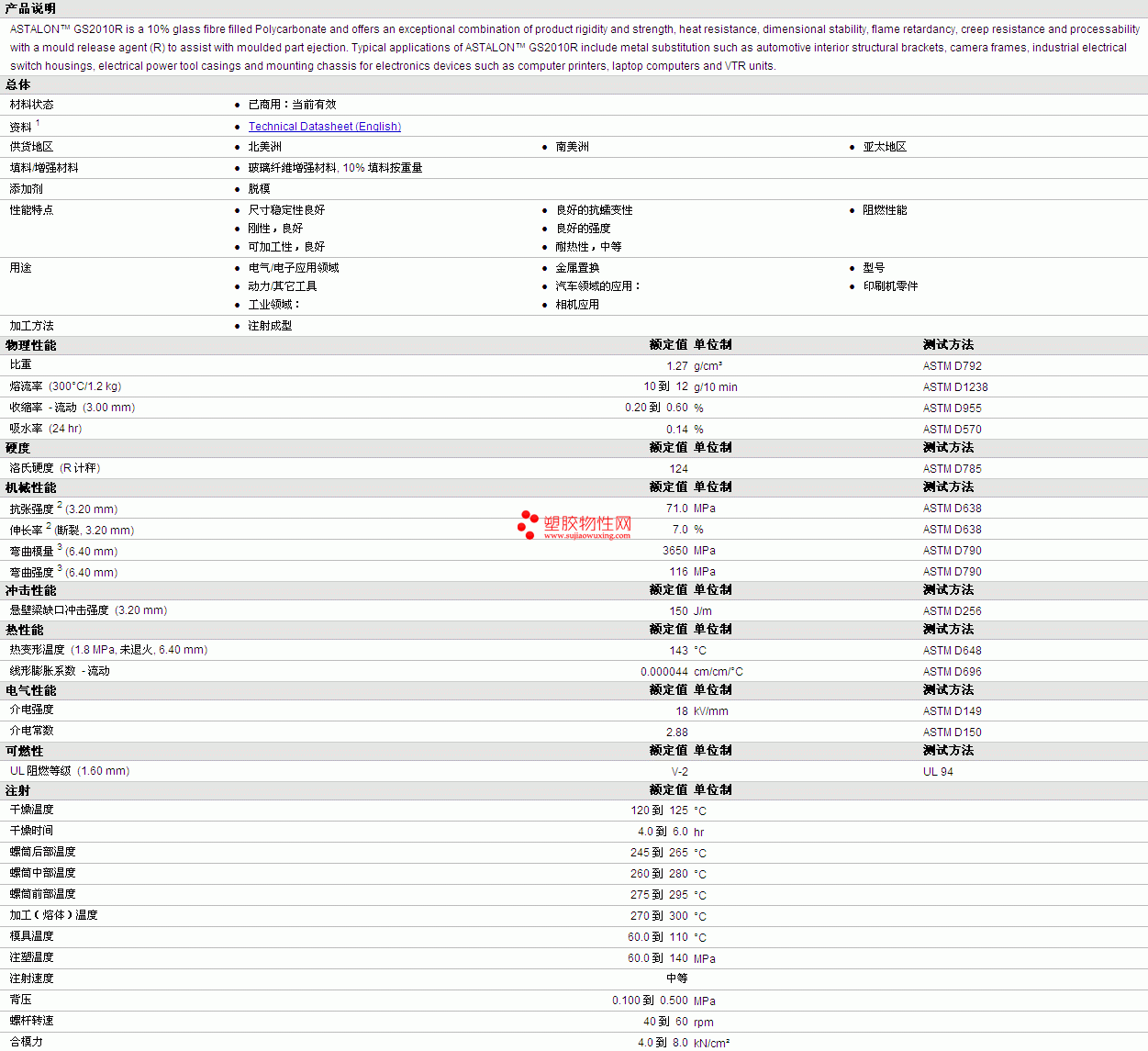 ASTALON PC GS2010R 物性表详情见附件