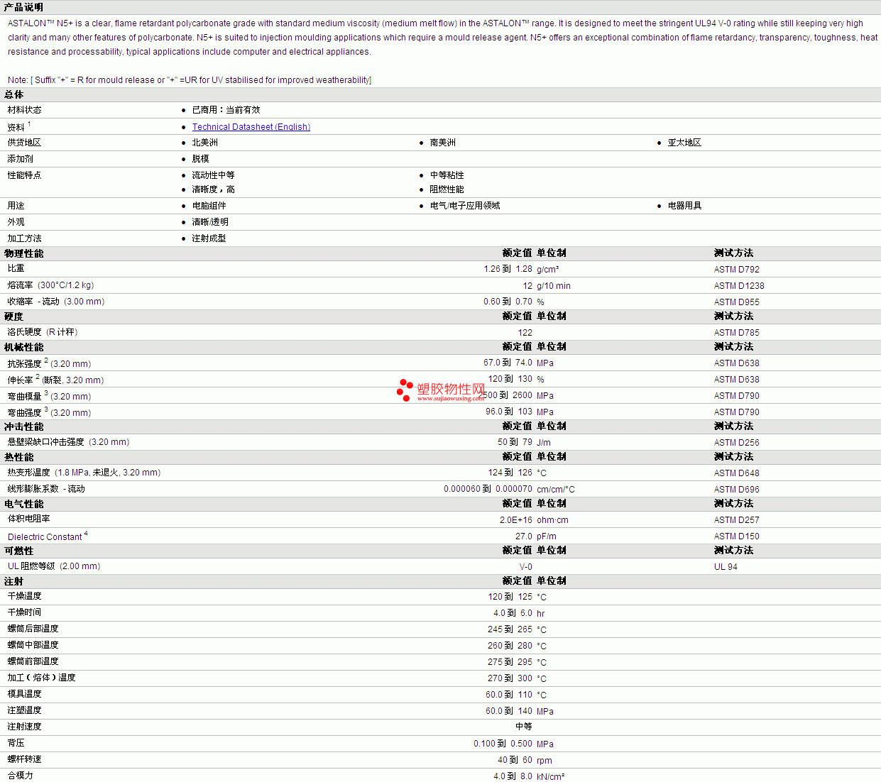 ASTALON PC N5+物性表详情见附件