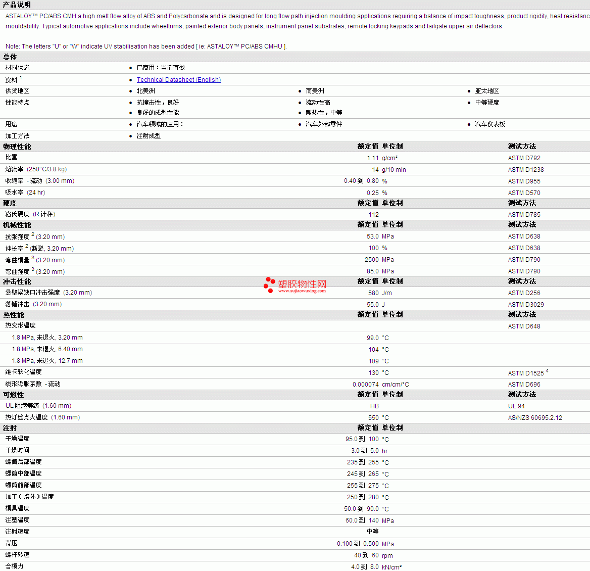 ASTALOY PC/ABS CMH 物性表更多资料见图