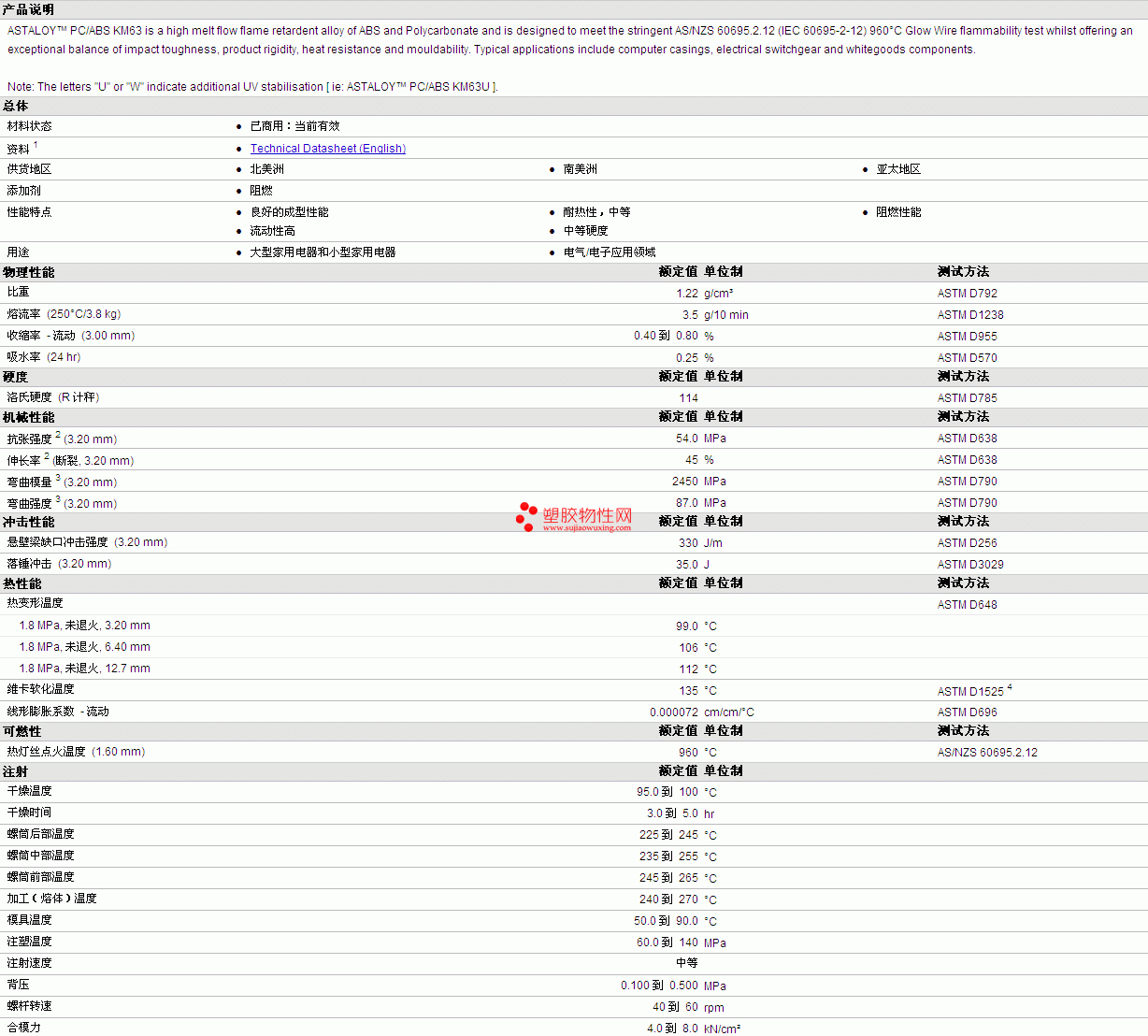 ASTALOY PC/ABS KM63 物性表详情见附件