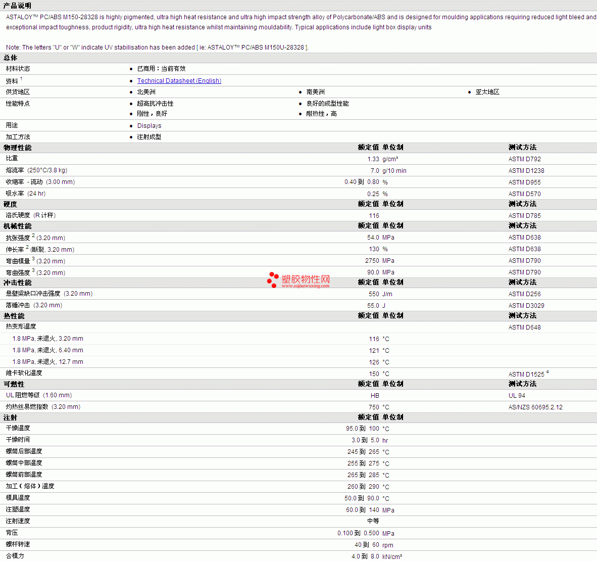 ASTALOY PC/ABS M150-28328 物性表详细情况如图