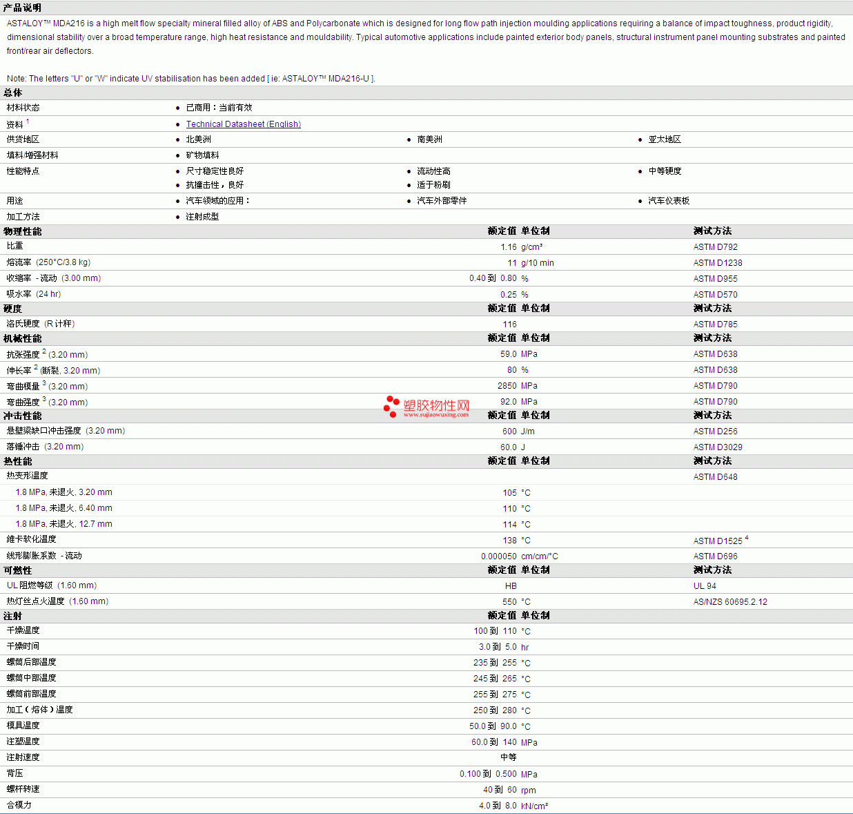 需了解ASTALOY PC/ABS MDA216物性表更多详情, 图片、物质安全资料表(MSDS)、UL黄卡等,最新行情报价等可来电咨询或QQ:767320520