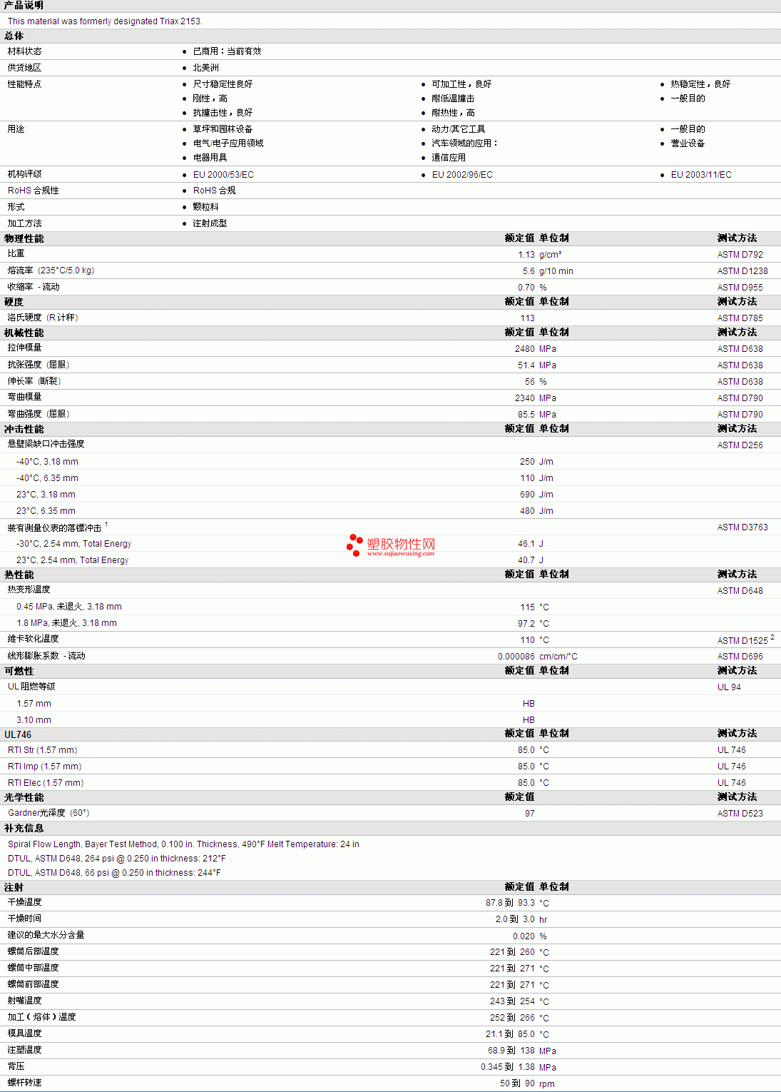 Bayblend ABS+PC 2153 物性表如图所示