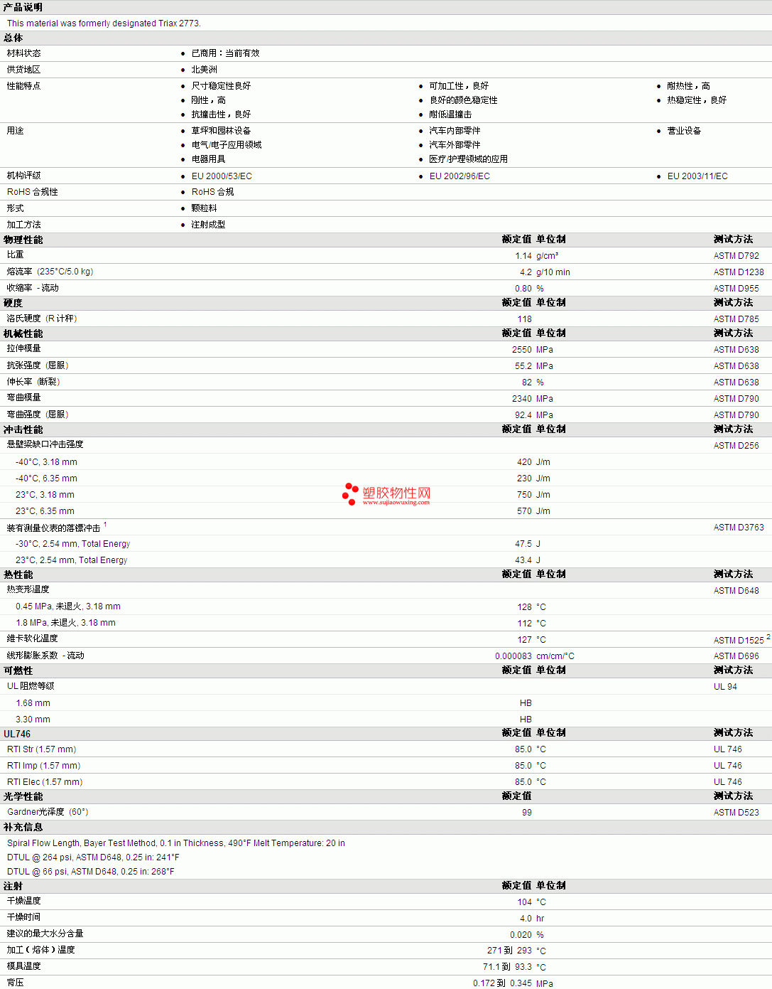 | 收缩率 - 流动 | 0.80 | % | ASTM D955 |