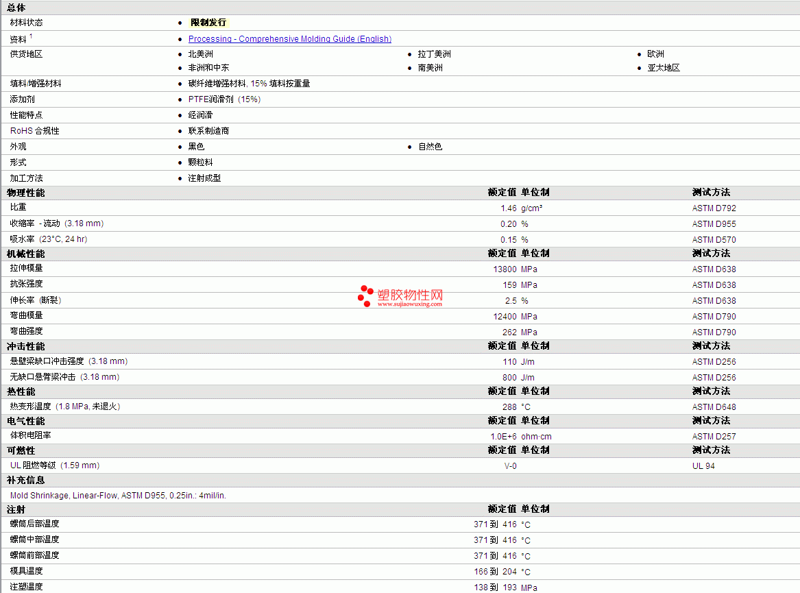 RTP Compounds PI 4282 TFE 15物性表详情见附件