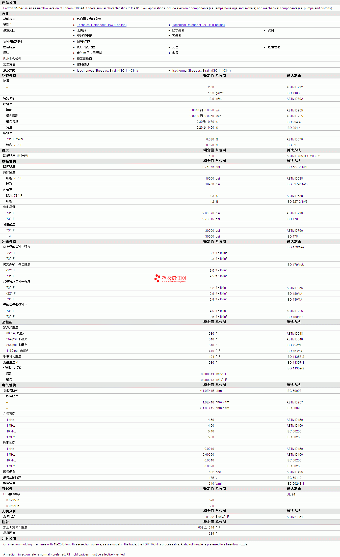 Fortron 6165A6物性表 详细情况如图