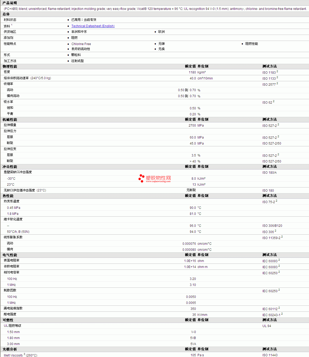 Bayblend ABS+PC FR 3005 HF 物性表更多资料见图
