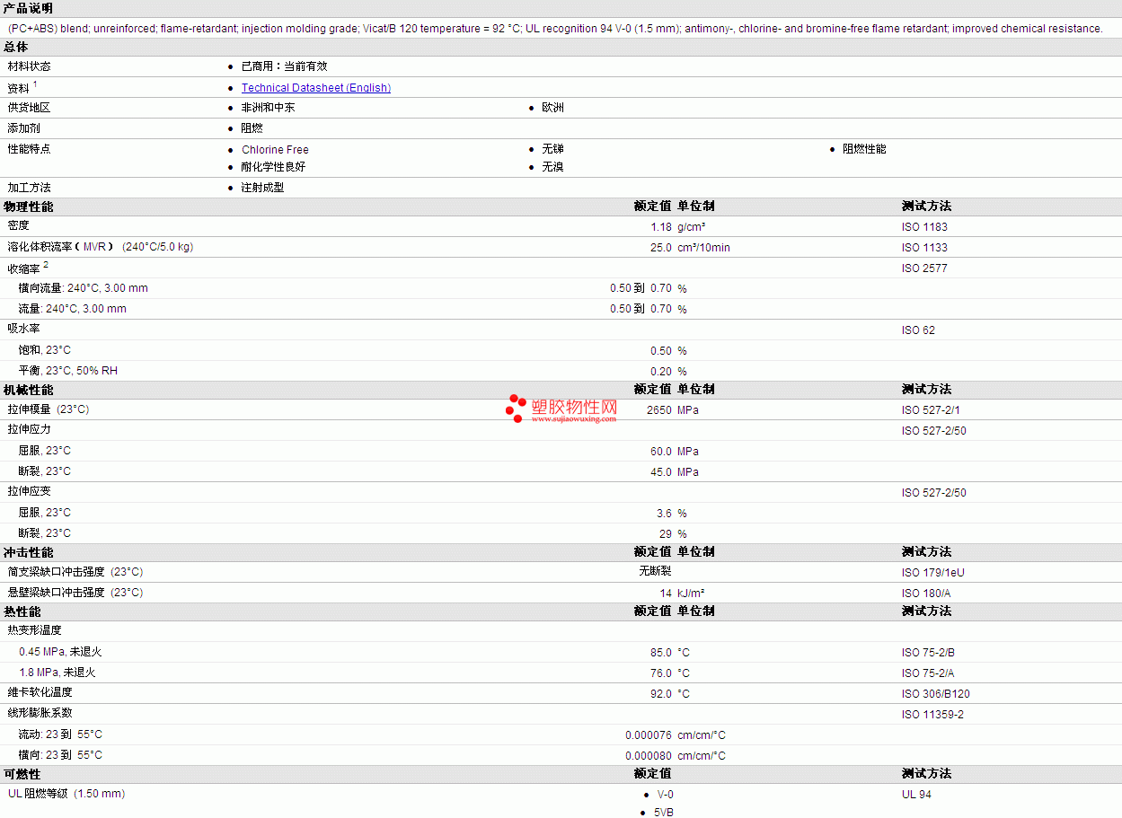 Bayblend ABS+PC FR3005 BBS310 物性表详细情况如图
