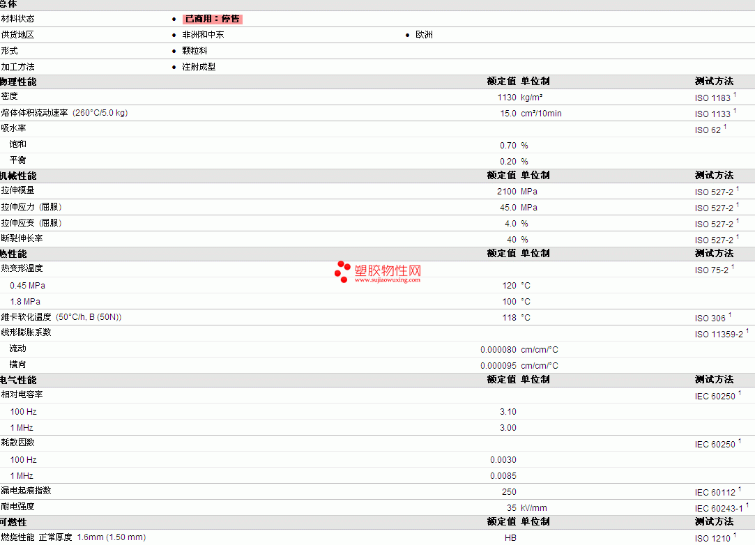 Bayblend ABS+PC R-T60 物性表详细情况如图