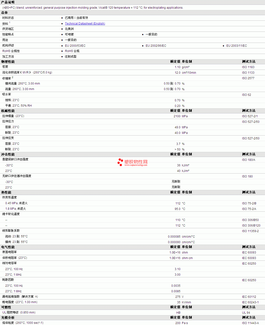 更多Bayblend ABS+PC T45 PG物质安全资料表(MSDS)、 物性表图片,UL黄卡等,最新行情报价等可来电咨询或QQ:767320520