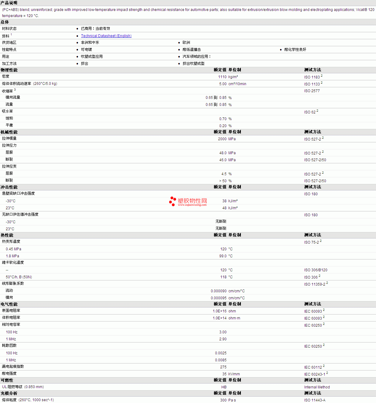 Bayblend ABS+PC T65 HI 物性表详情见附件