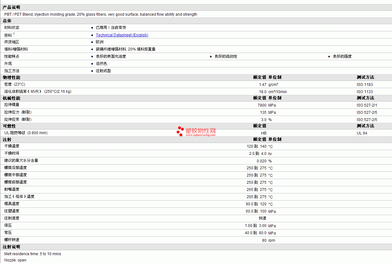 CompaDurPBT/PET 125 GF 20 natural (015)物性表更多资料见下图
