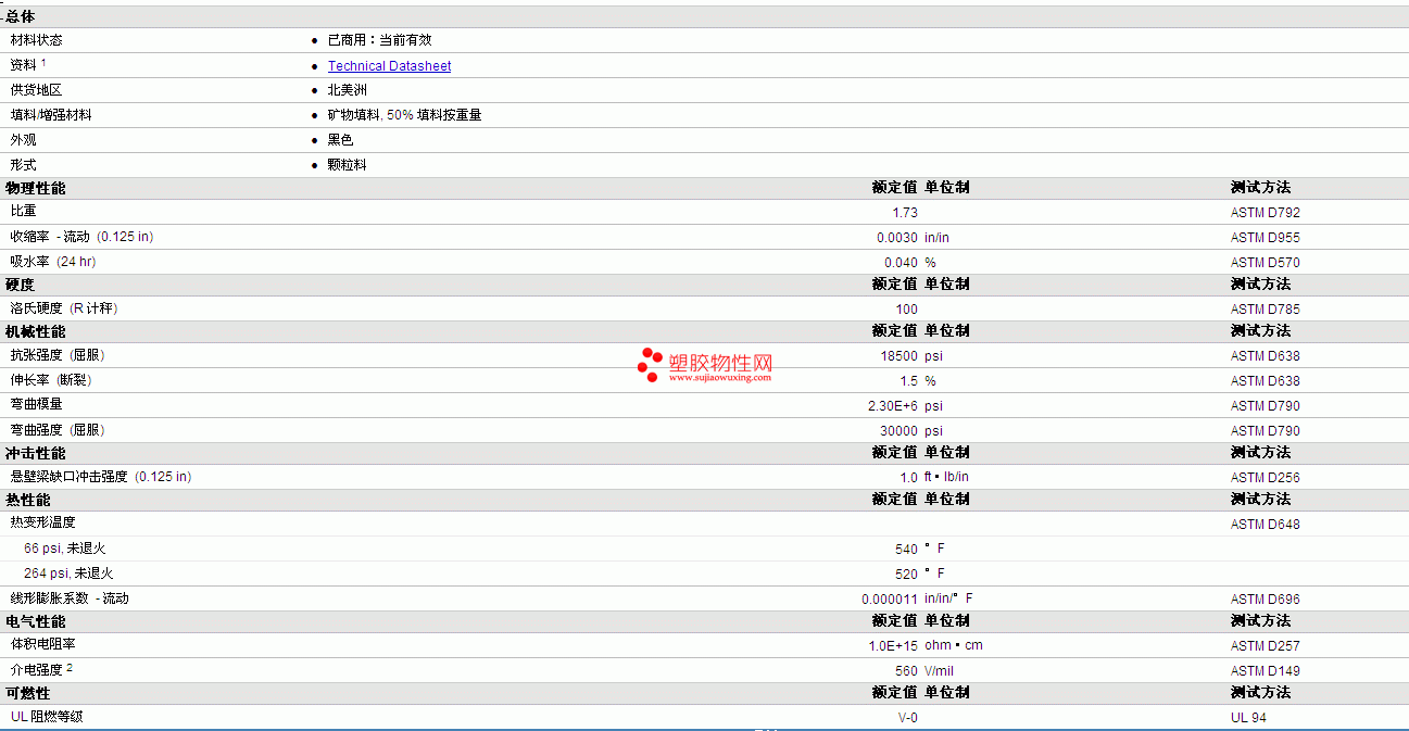 HiFill PPS/F WM50 BK物性表 详细情况如图