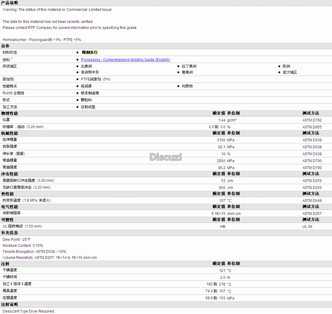 更多RTP Compounds POM 899 X 90822物性表资料见下图: