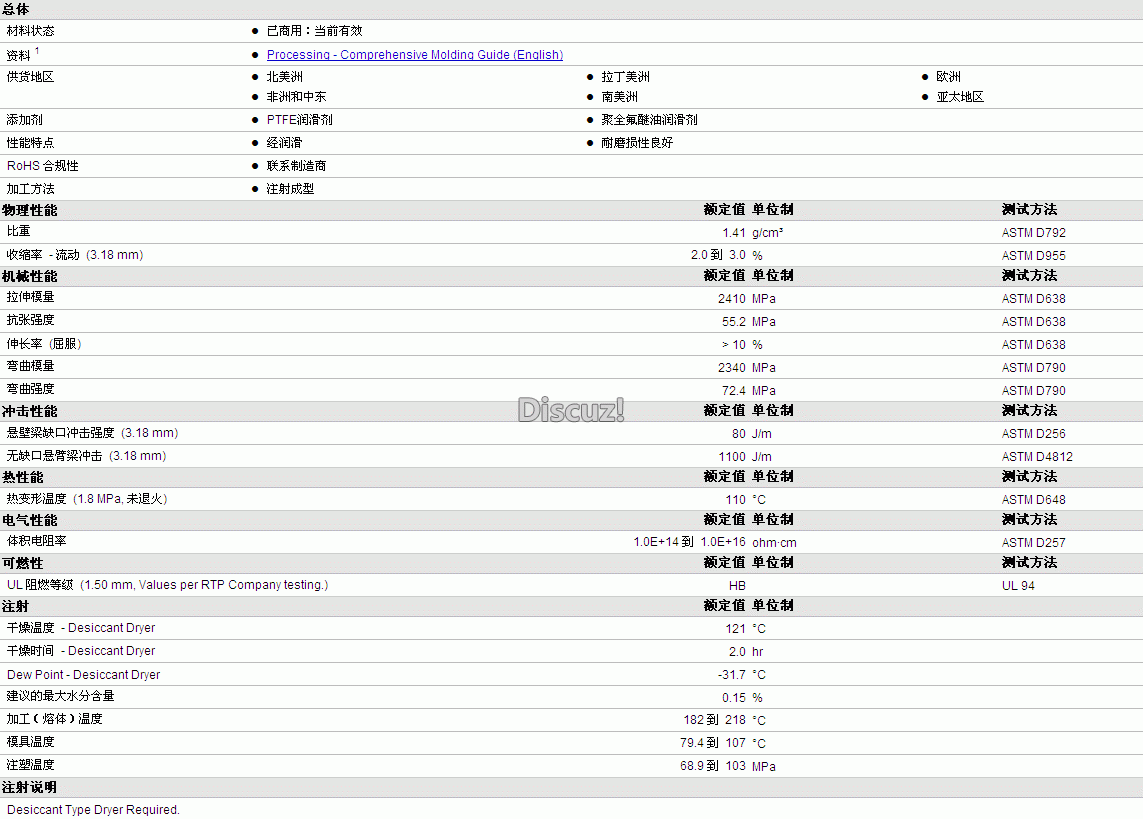 更多RTP Compounds POM 899 X 93924物性表资料见下图: