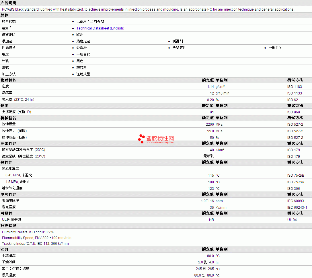 BESTPOLUX ABS+PC PCAH/02物性表 详细情况如图