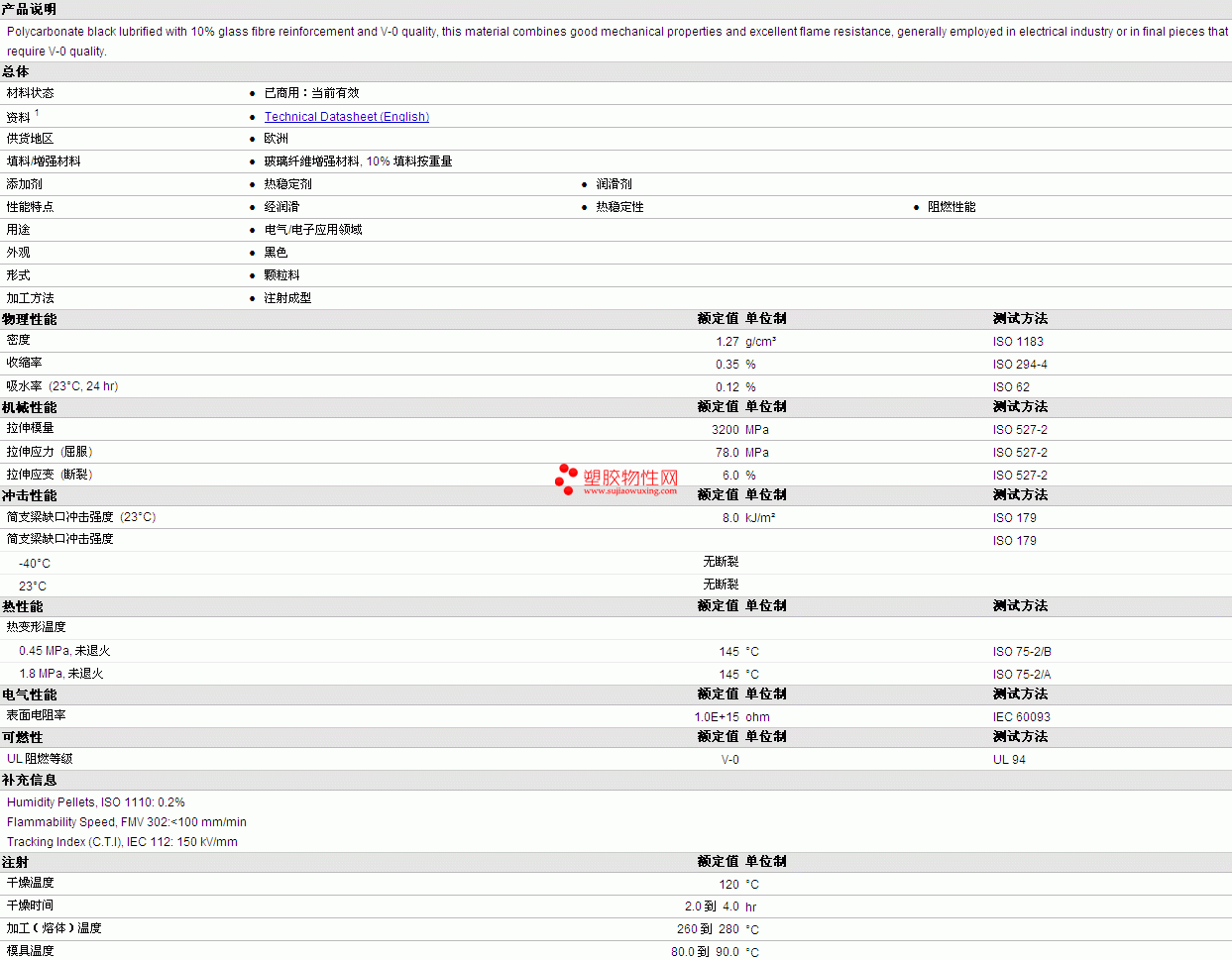 BESTPOLUX PC PCG2X/02 物性表见下图