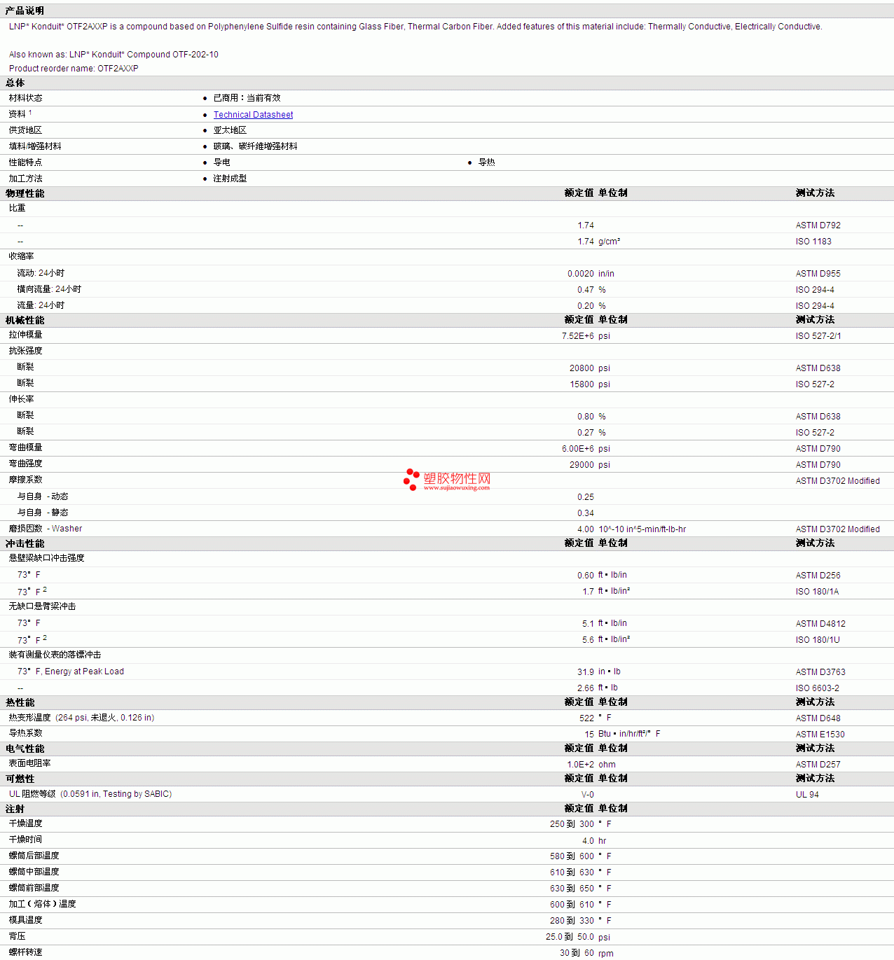 LNP* Konduit* OTF2AXXP物性表 详细情况如图