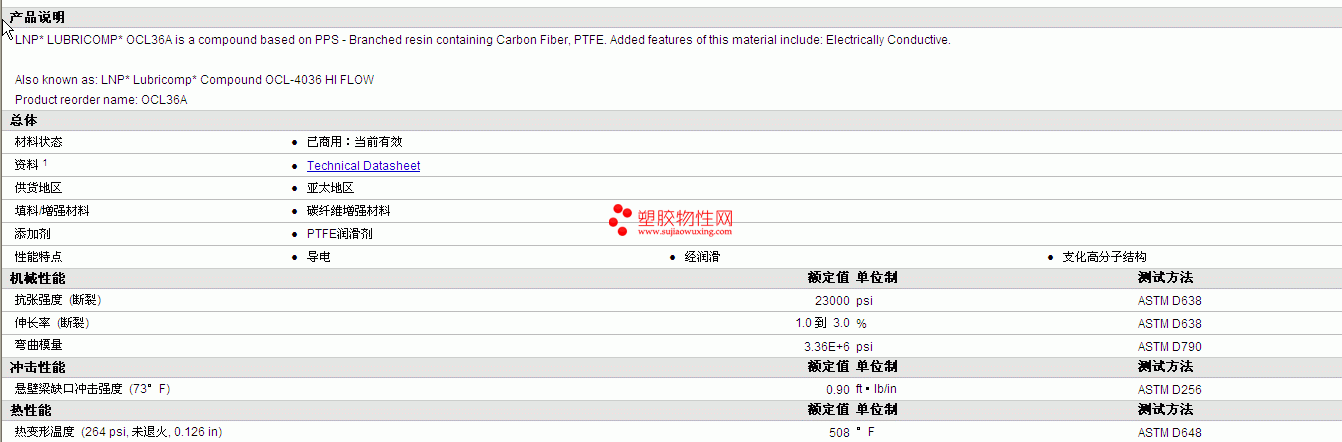 LNP* Lubricomp* OCL36A物性表 详细情况如图