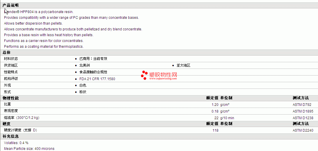 BLENDEX PC HPP804 塑料更多详情,其他塑胶原料物性LCP E130I、PA9T GN2330、HIPS 475可来电咨询或QQ:767320520