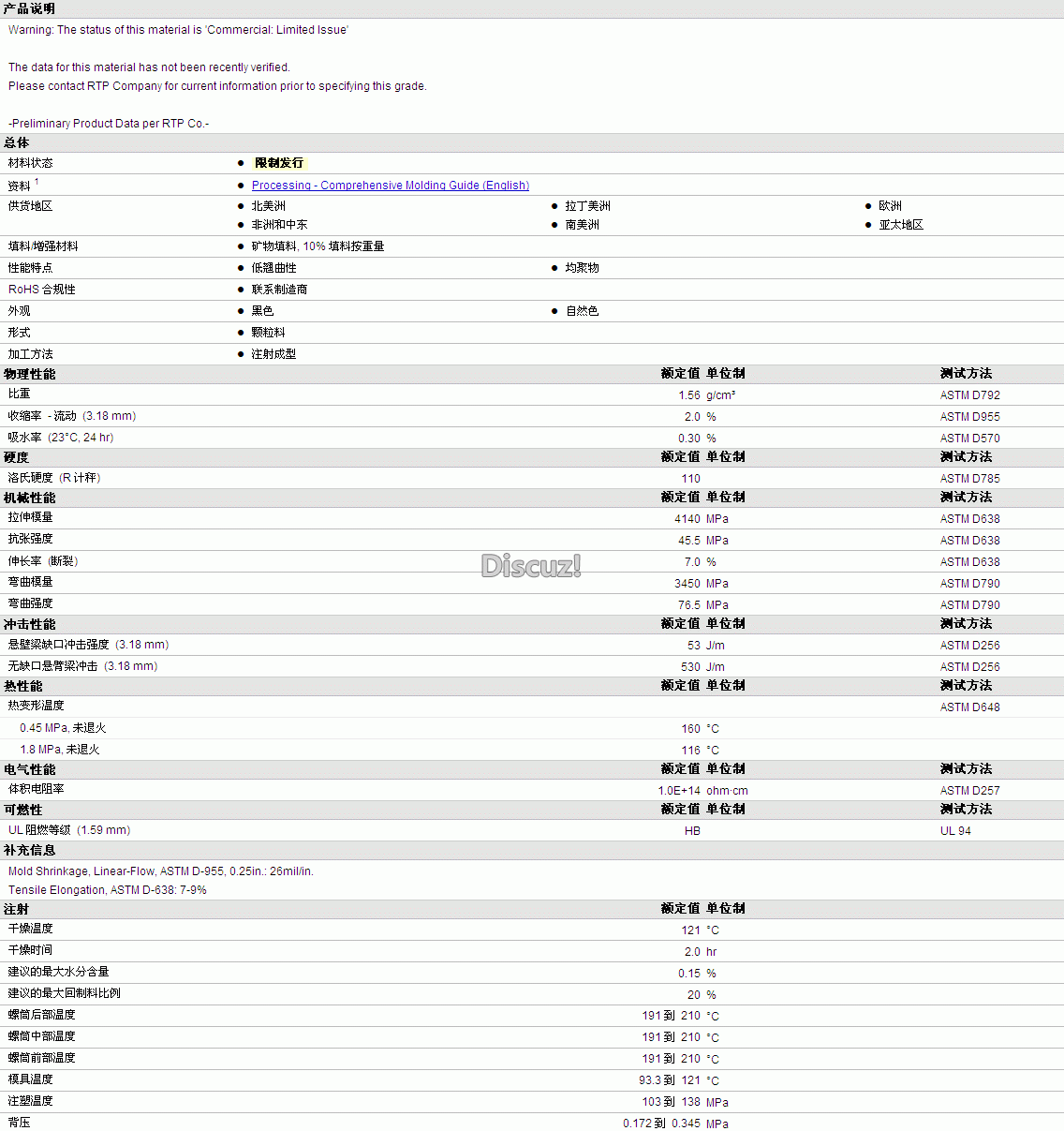 更多RTP Compounds POM 841 DEL物性表资料见下图:
