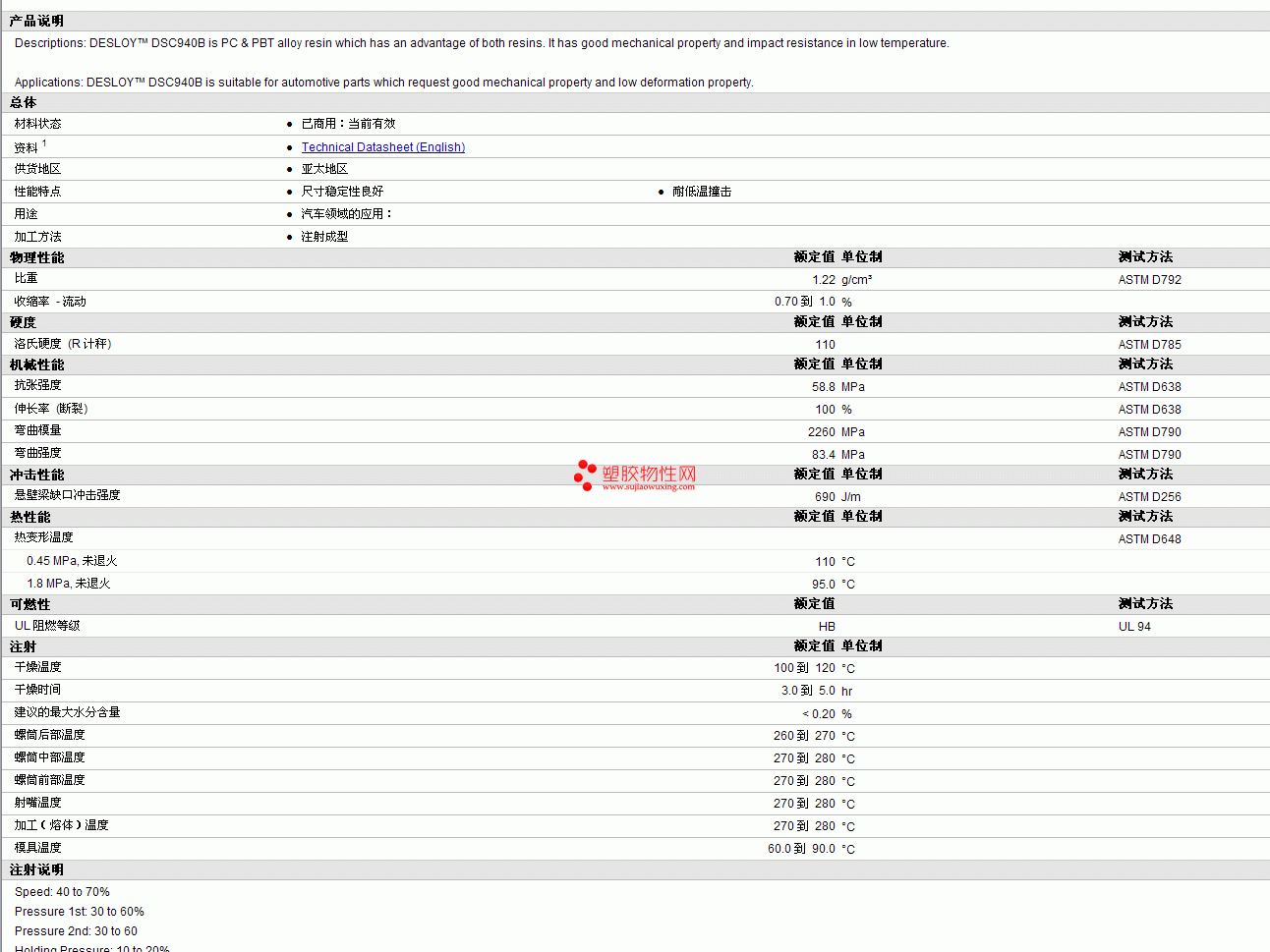 DESLOY pb t DSC940B物性表 详情见附件