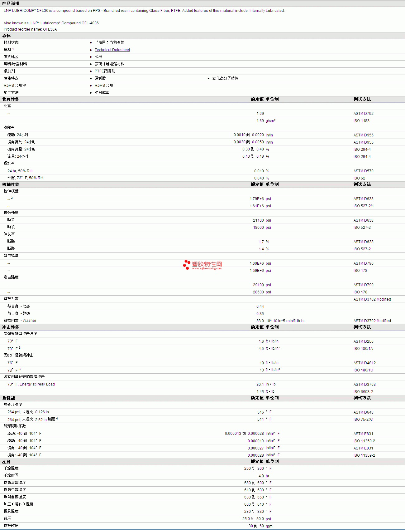 LNP* Lubricomp* OFL36A物性表 详细情况如图