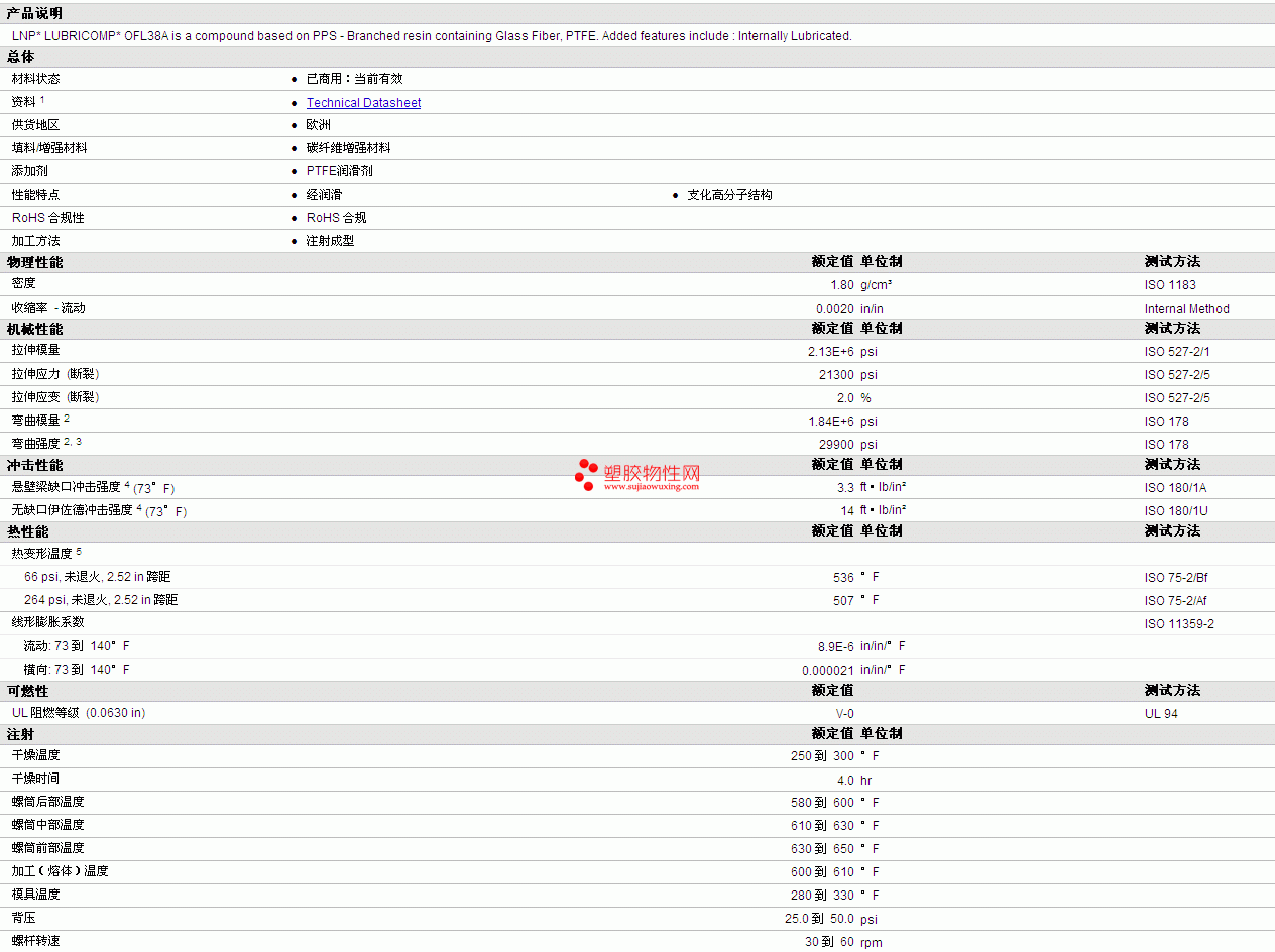 LNP* Lubricomp* OFL38A物性表 详细情况如图