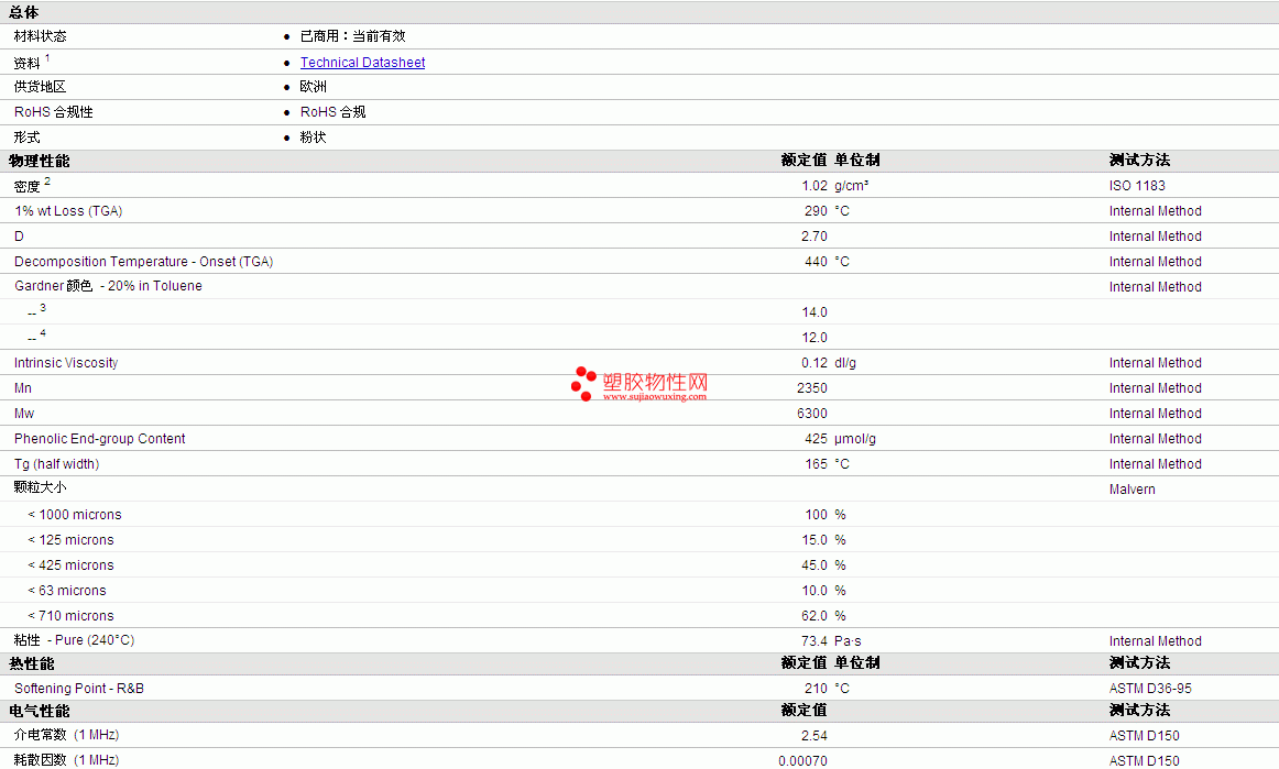 | 物理性能 | 额定值 | 单位制 | 测试方法 |