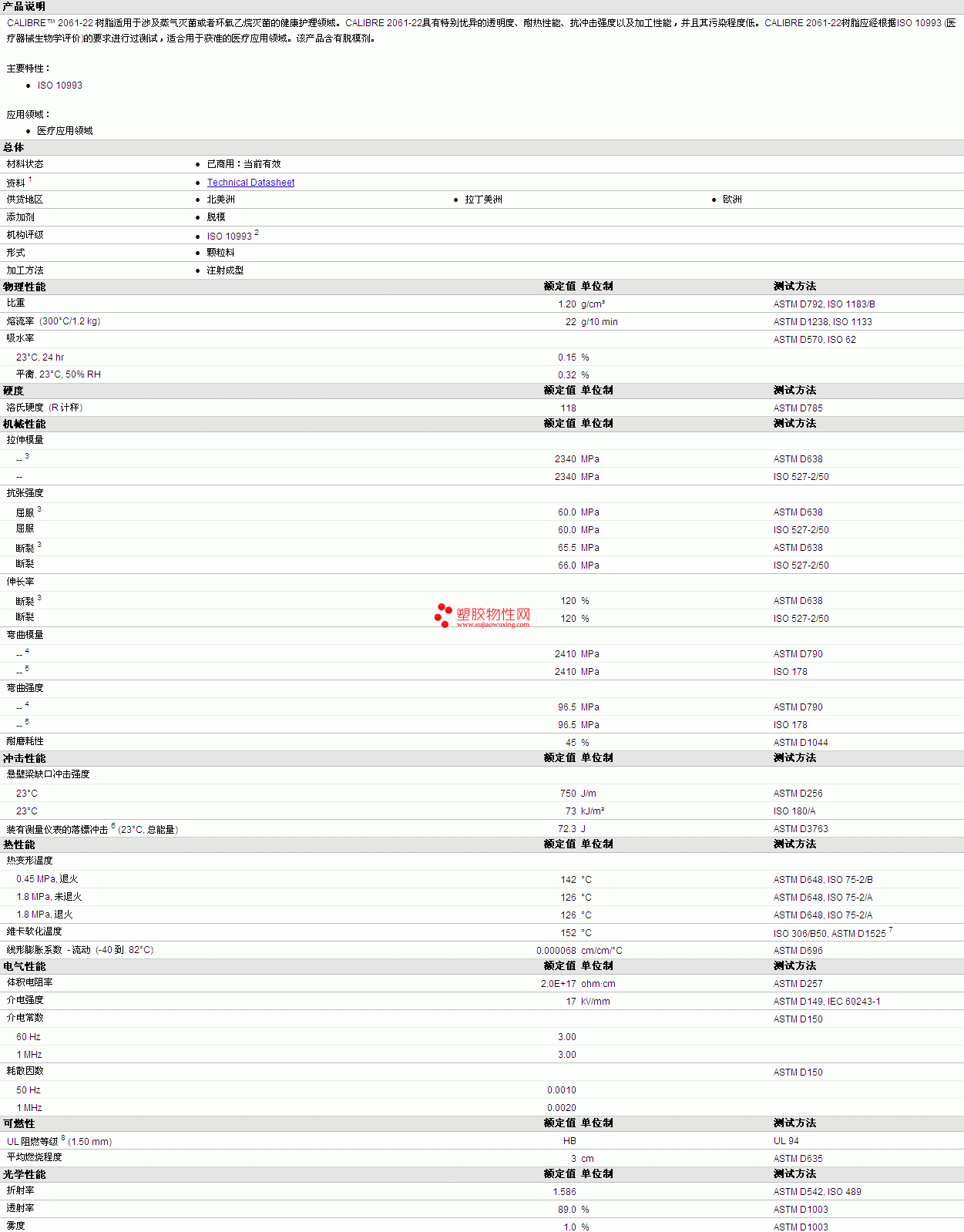 CALIBRE PC 2061-22 物性表详情见附件