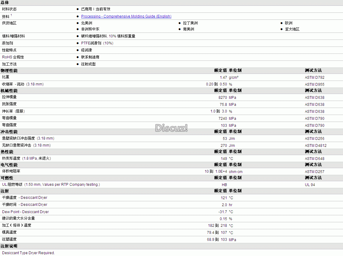 更多RTP Compounds POM 881 TFE 10物性表资料见下图: