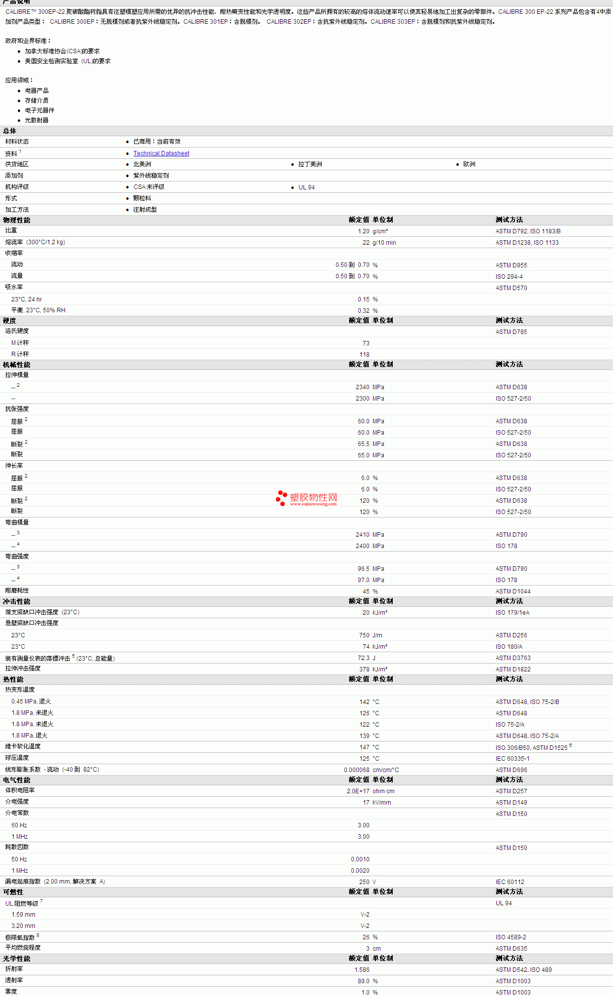 CALIBRE PC 302EP-22塑料更多详情,其他塑胶原料物性POM 100P、HIPS 475、LCP E130I可来电咨询或QQ:767320520
