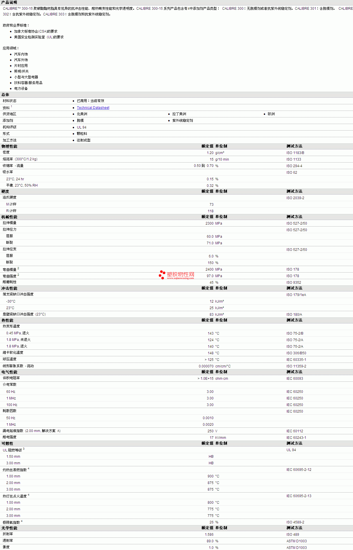 更多CALIBRE PC 303-15物性表图片,物质安全资料表(MSDS)、材质证明、UL黄卡等,最新行情报价等可来电咨询或QQ:767320520