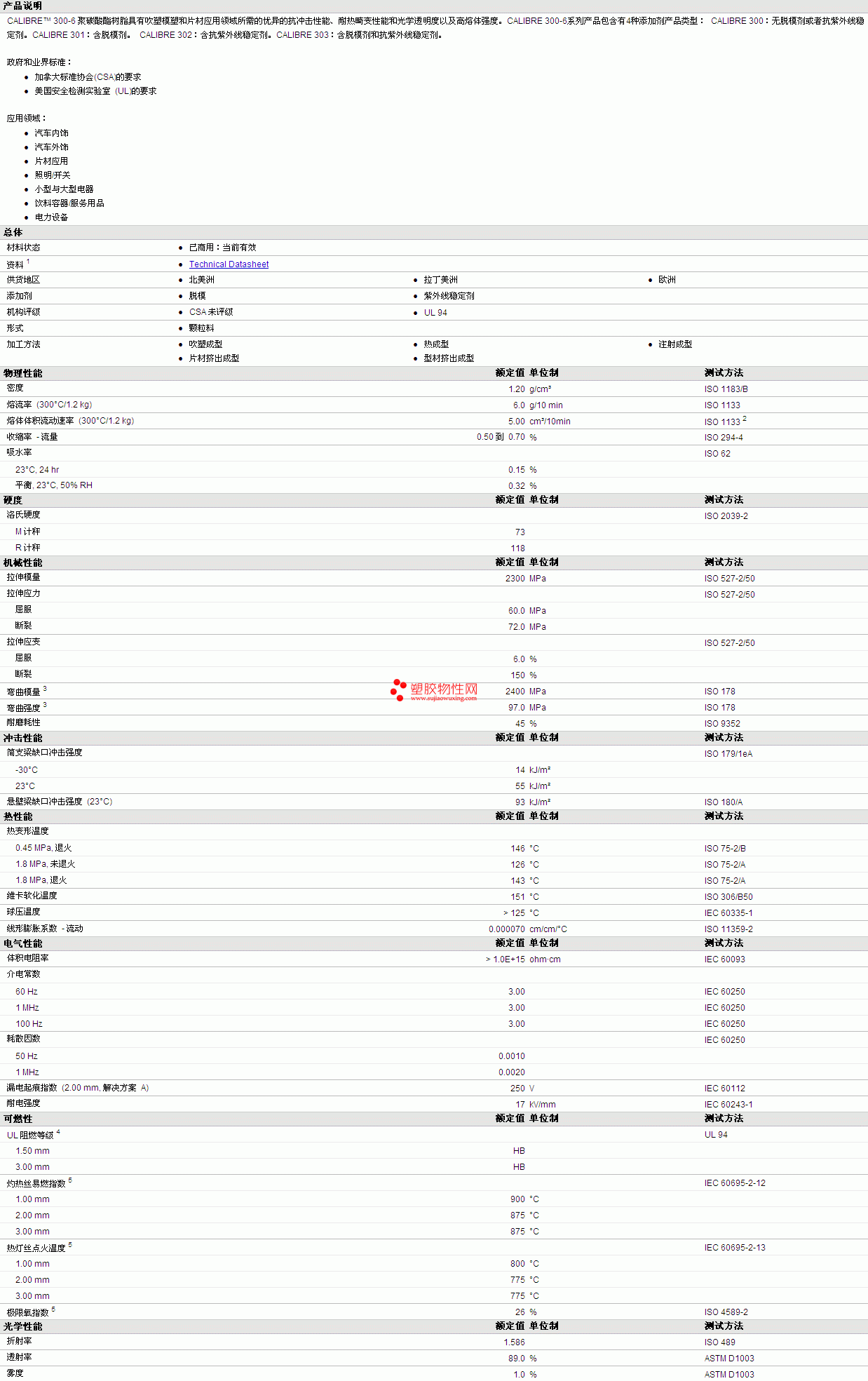更多CALIBRE PC 303-6物性表图片,物质安全资料表(MSDS)、材质证明、UL黄卡等,最新行情报价等可来电咨询或QQ:767320520