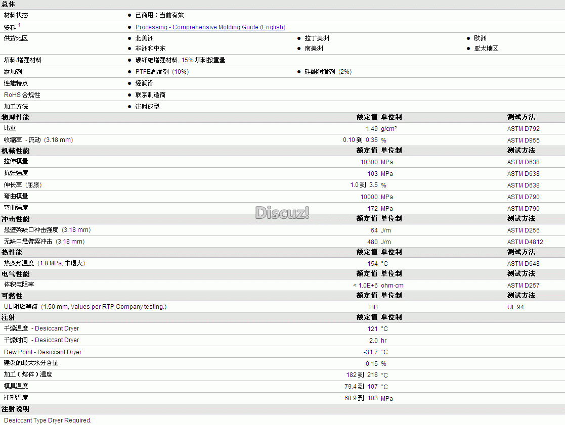 更多RTP Compounds POM 882 TFE 10 SI 2物性表资料见下图: