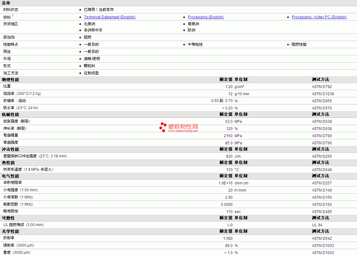 Carbotex PC K-30FRT12 塑料更多详情,其他塑胶原料物性POM 100P、LCP E130I可来电咨询或