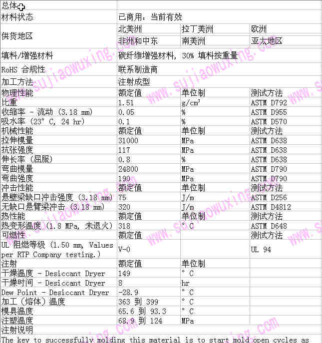 拉伸模量 | 31000 | MPa | ASTM D638 |