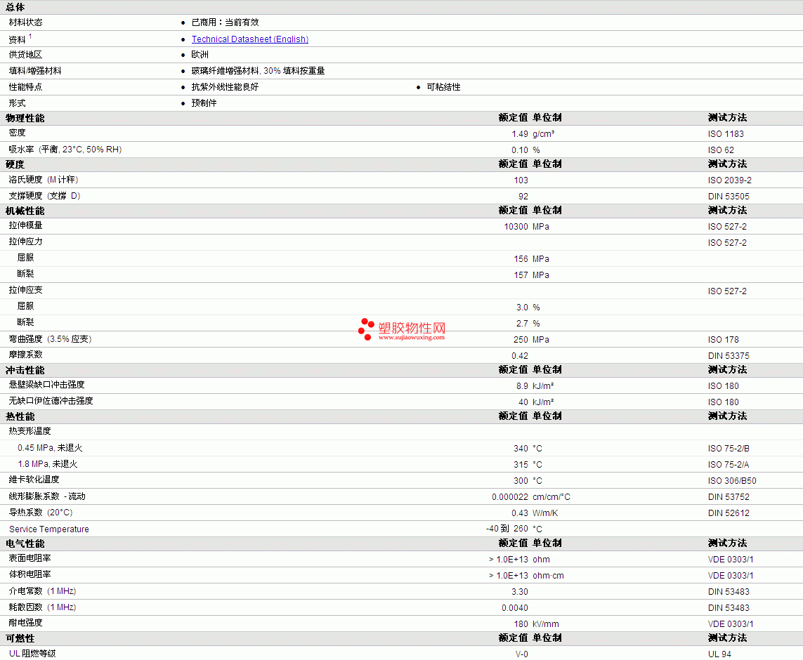 | 拉伸模量 | 10300 | MPa | ISO 527-2 |