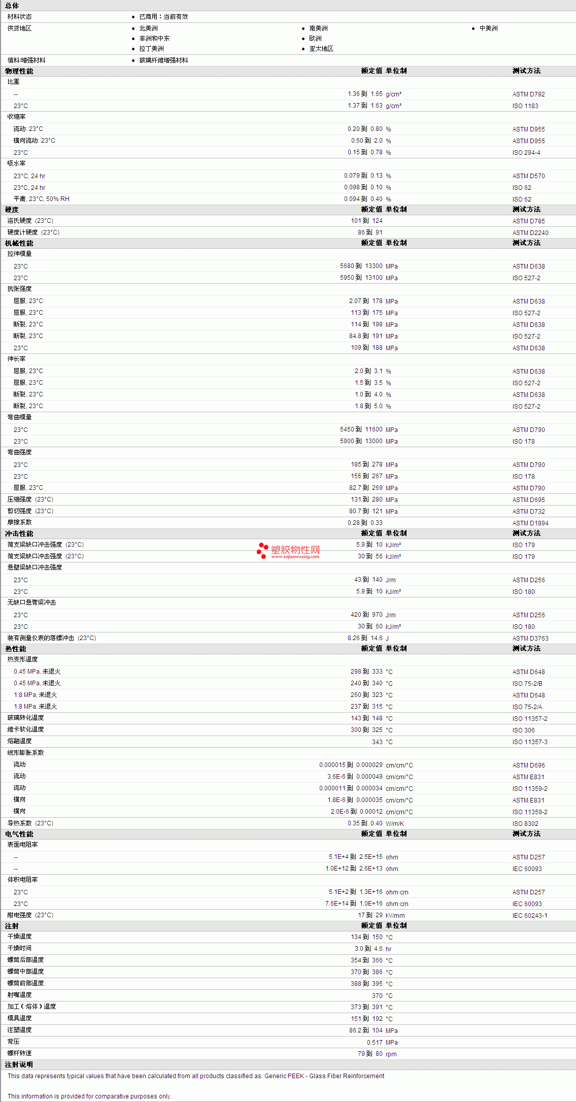 | -- | 1.36 到 1.65 | g/cm³ | ASTM D792 |