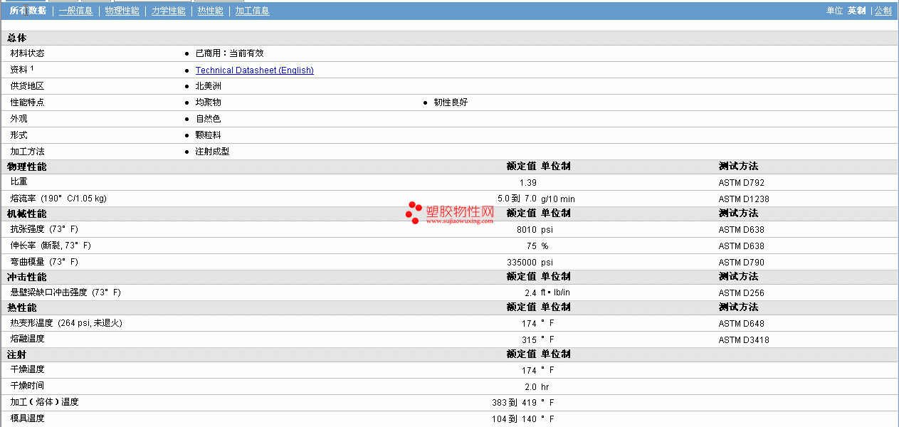 | 机械性能 | 额定值 | 单位制 | 测试方法 |