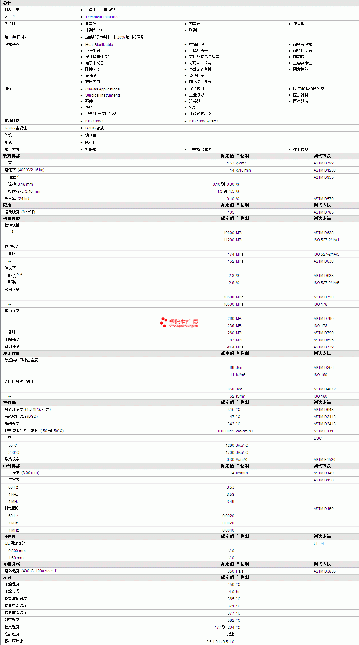 KetaSpire PEEK KT-880 GF30物性表更多资料见图