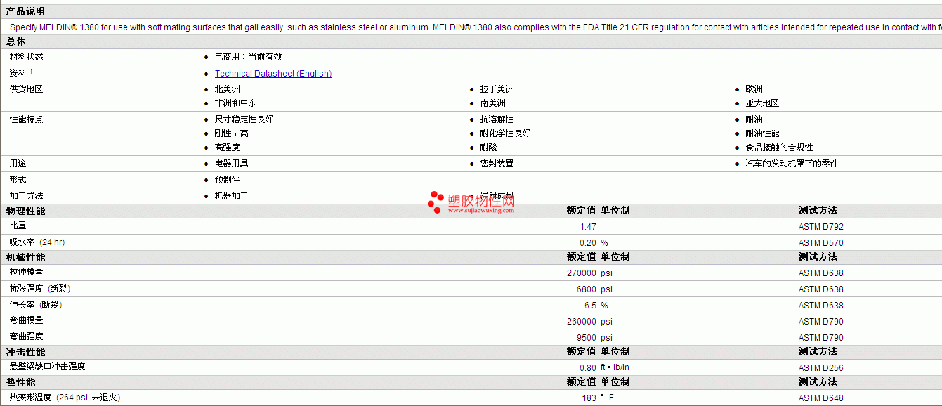 | 拉伸模量 | 270000 | psi | ASTM D638 |