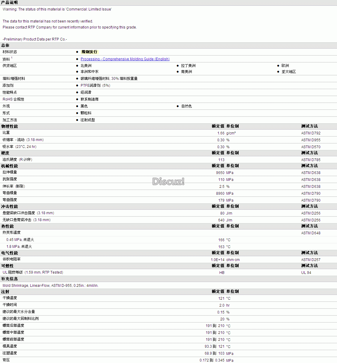 更多RTP Compounds POM 805 TFE 5物性表资料见下图:
