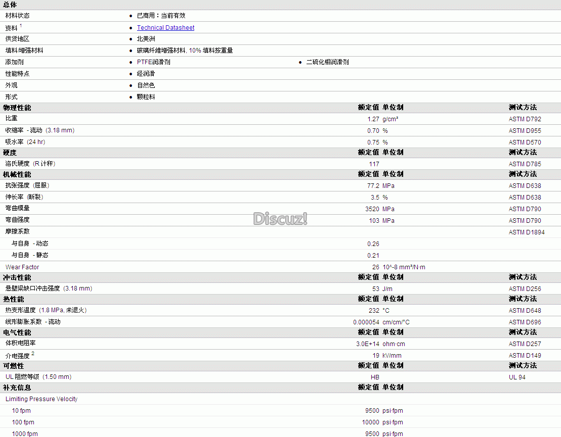 Lubriblend PA6/6 GF10 M/TL10物性表资料
