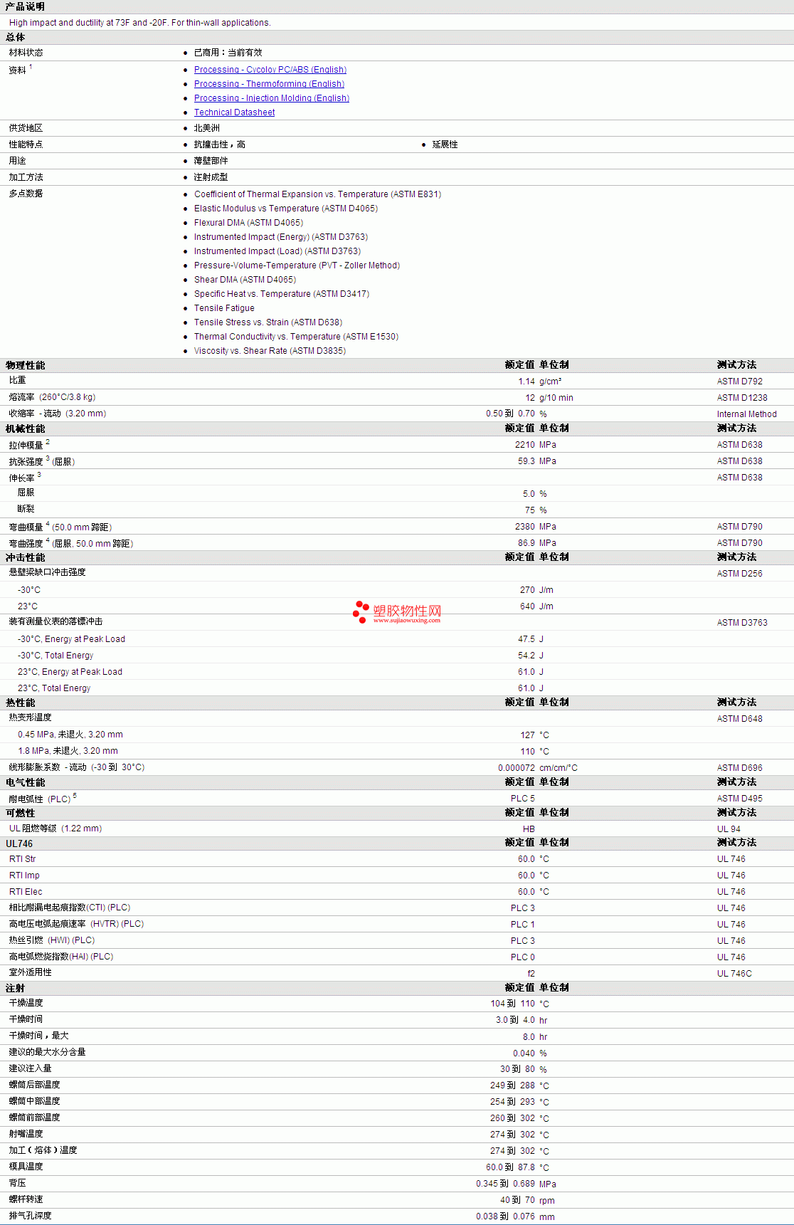 | 拉伸模量 2 | 2210 | MPa | ASTM D638 |
